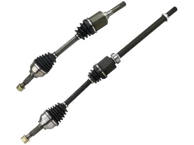 To remove the axle shaft, first loosen the front wheel lug nuts, raise the vehicle, and support it securely on jackstands before removing the wheel. Next, take out the cotter pin and the axle shaft/hub nut, using a prybar between two wheel studs to assist in loosening it. Alternatively, the vehicle can remain on the ground while the hubcap or center cap is removed, followed by the cotter pin and loosening the axle shaft/hub nut. Then, detach the wheel speed sensor from the steering knuckle. For 2011 and earlier models, remove the control arm ball joint-to-steering knuckle pinch bolt, pry downward on the lower control arm to separate the lower balljoint from the steering knuckle, and push the axle shaft out of the hub while pulling outward on the steering knuckle and hub assembly. If the axle shaft splines are frozen, tap the end of the axle shaft with a soft-faced hammer or use a puller. Place a drain pan underneath the transaxle to catch any lubricant that may spill out during removal. For the left axle shaft, carefully pry the inner CV joint out of the transaxle. For the right axle shaft, detach it from the support bracket by removing the retainer-to-bracket bolts and marking the relationship of the bearing to the support bracket before pulling out the assembly. For 2012 and later models, disconnect the brake hose bracket from the strut, remove the brake caliper and disc without disconnecting the brake hose, and suspend the caliper to prevent damage. Break free the axle shaft from the hub, remove the strut-to-steering knuckle fasteners, and push the axle shaft out of the hub while pulling outward on the steering knuckle and hub assembly. Use a prybar or slide hammer with an axle shaft removal tool to remove the inner CV joint from the transaxle. Install a new axle shaft oil seal on the transaxle case if necessary. For installation, place a new retaining clip on the axle end before installation if reusing the old axle, and follow the reverse order of removal while ensuring to push the left axle shaft in sharply to seat the retaining ring. Tighten all fasteners to the proper torque specifications, ensuring the brake caliper mounting bolts are also tightened on 2012 and later models. Finally, install a new cotter pin, the wheel and lug nuts, lower the vehicle, tighten the lug nuts, and check the transaxle lubricant level, adding if necessary.