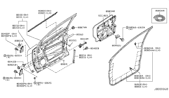 Nissan Murano parts. Parts like Front Door Panel & Fitting are shipped directly from authorized Nissan dealers and backed by the manufacturer's warranty. Parts fit for the following vehicle options. Engine: 6 Cyl 3.5L. Grade/Trim: S, SE, SL.