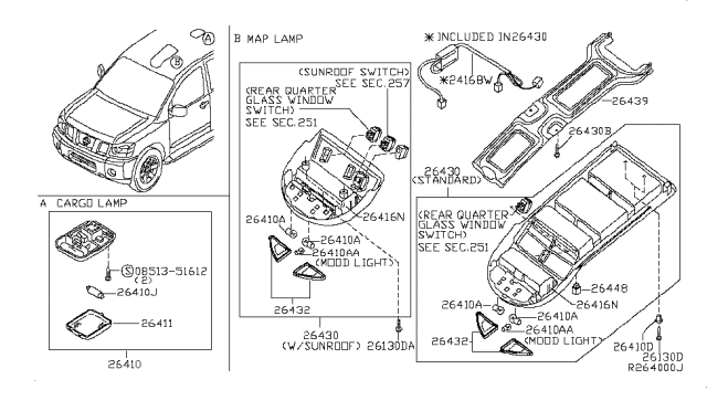 NissanPartsDeal.com offers the wholesale prices for genuine 2005 Nissan Armada parts. Parts like Room Lamp are shipped directly from authorized Nissan dealers and backed by the manufacturer's warranty. Parts fit for the following vehicle options. Engine: 8 Cyl 5.6L. Grade/Trim: LE, LE/SL, Platinum, SE, SE/SV.