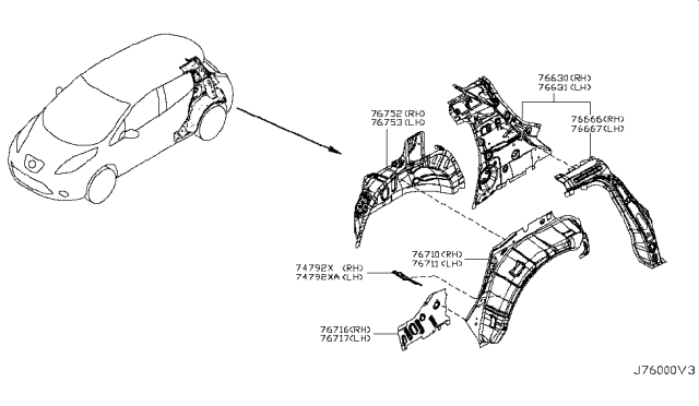 Nissan Leaf parts. Parts like Body Side Panel are shipped directly from authorized Nissan dealers and backed by the manufacturer's warranty. Parts fit for the following vehicle options. Engine: Electric Motor. Grade/Trim: Upper.
