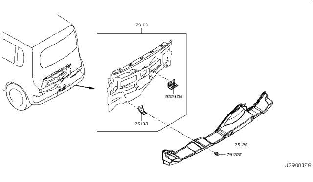 Nissan Cube parts. Parts like Rear,Back Panel & Fitting are shipped directly from authorized Nissan dealers and backed by the manufacturer's warranty. Parts fit for the following vehicle options. Engine: 4 Cyl 1.8L. Grade/Trim: 18, S, SL.