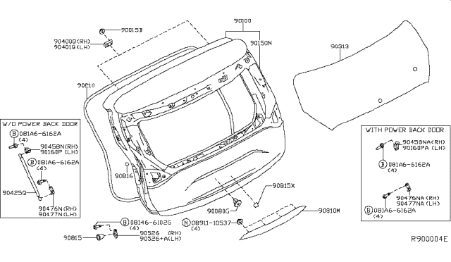 NissanPartsDeal.com offers the wholesale prices for genuine 2015 Nissan Murano parts. Parts like Back Door Panel & Fitting are shipped directly from authorized Nissan dealers and backed by the manufacturer's warranty. Parts fit for the following vehicle options. Engine: 6 Cyl 3.5L. Grade/Trim: Platinum, S, SL, SV.