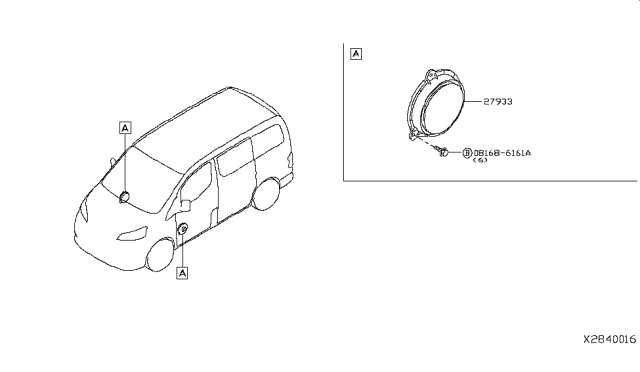 Nissan NV200 Compact cargo parts. Parts like Speaker are shipped directly from authorized Nissan dealers and backed by the manufacturer's warranty. Parts fit for the following vehicle options. Engine: 4 Cyl 2.0L. Grade/Trim: S, SV.