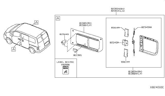 Nissan NV200 Taxi parts. Parts like Slide Door Window are shipped directly from authorized Nissan dealers and backed by the manufacturer's warranty. Parts fit for the following vehicle options. Engine: 4 Cyl 2.0L. Grade/Trim: STD.