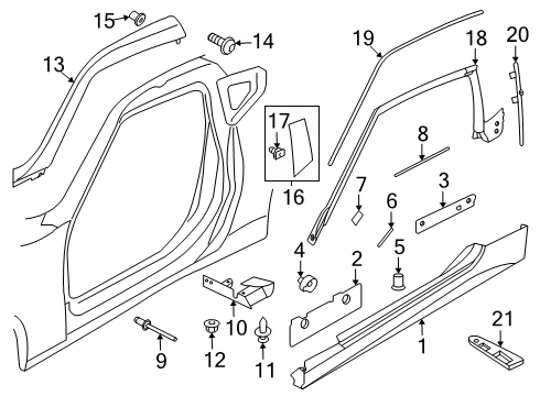 Diagram (1 of 1): Pillars, rocker & floor - Exterior trim