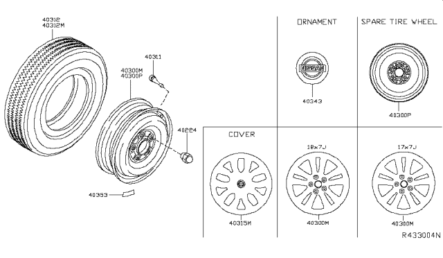 To ensure reliability, purchase Nissan part # 40300-6FL2A Aluminum Wheel. It can be referred to as Spare Wheel. The first option would be to use OEM parts. Designed by Nissan manufacturer and are produced with stringent factory specifications, undergoing the quality control procedures. This part fits 2016-2020 Rogue.