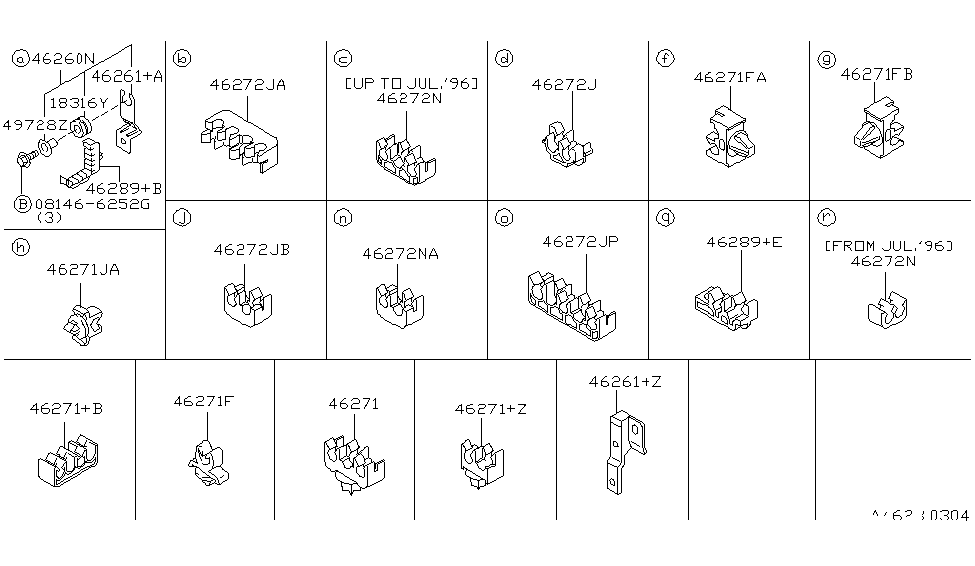 To ensure reliability, purchase Nissan part # 46272-0W010 Insulator. The first option would be to use OEM parts. Designed by Nissan manufacturer and are produced with stringent factory specifications, undergoing the quality control procedures. This part fits 1996-1998 Pathfinder.
