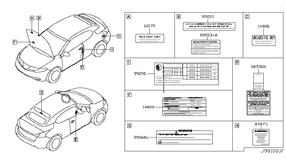 To ensure reliability, purchase Nissan part # 87873-1GR0A Label, Caution. The first option would be to use OEM parts. Designed by Nissan manufacturer and are produced with stringent factory specifications, undergoing the quality control procedures. This part fits 2011-2014 Murano.