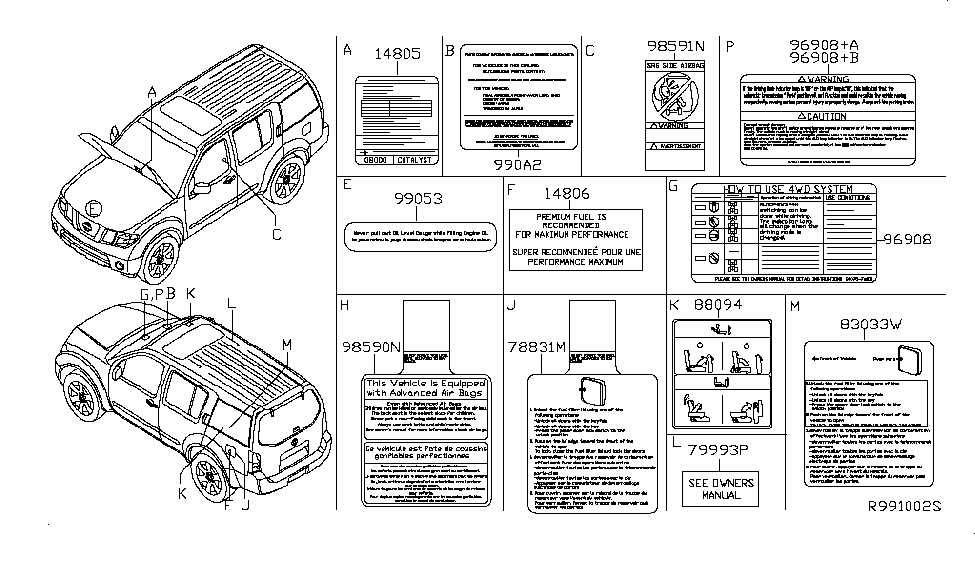 To ensure reliability, purchase Nissan part # 78831-EA50B Label-Fuel Filler. The first option would be to use OEM parts. Designed by Nissan manufacturer and are produced with stringent factory specifications, undergoing the quality control procedures. This part fits 2006-2009 Pathfinder.